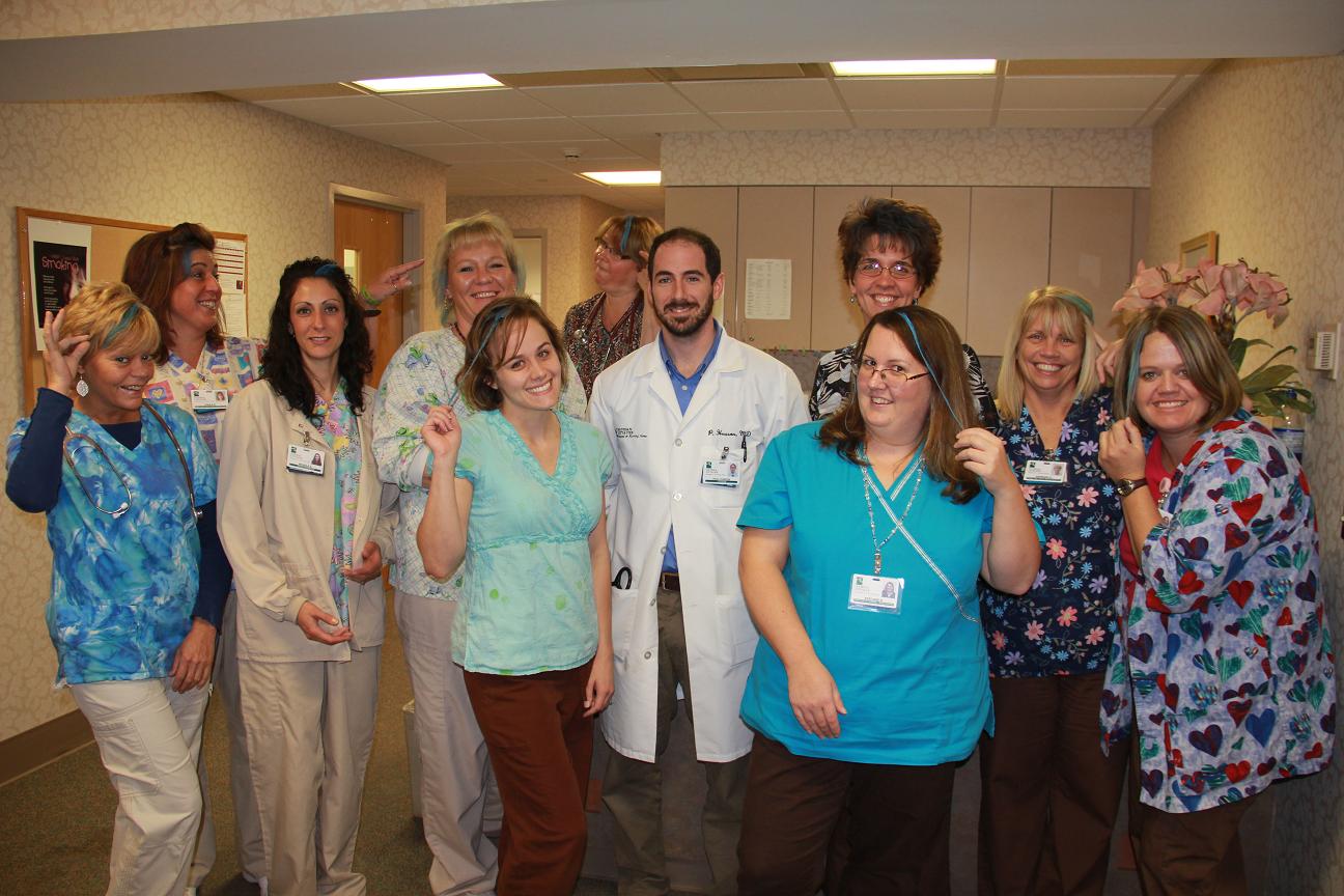 Dr. Husson and team promote prostate health Posted on September 27, 2012October 12, 2012 by Dakota Pike Dr. Husson grew a beard for Septembeard- a worlwide effort to raise awareness about prostate health. NLH staff dyed their hair blue in solidarity with Dr. Husson.This is the final week of Septembeard- a month long prostate awareness program. Men across the country have volunteered to grow their beards in September to support the cause. Our own Dr. Husson has been growing a beard all month long to promote awareness about this important health issue. In solidarity, NLH staff dyed their hair blue to support Dr. Husson and do their part to promote prostate health.